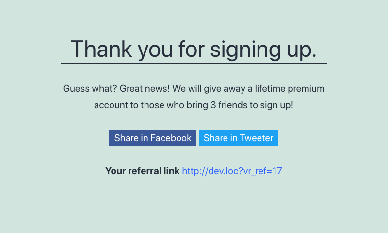 Send emails to the user with confirmation of subscription and upon reaching the number of referrals.
